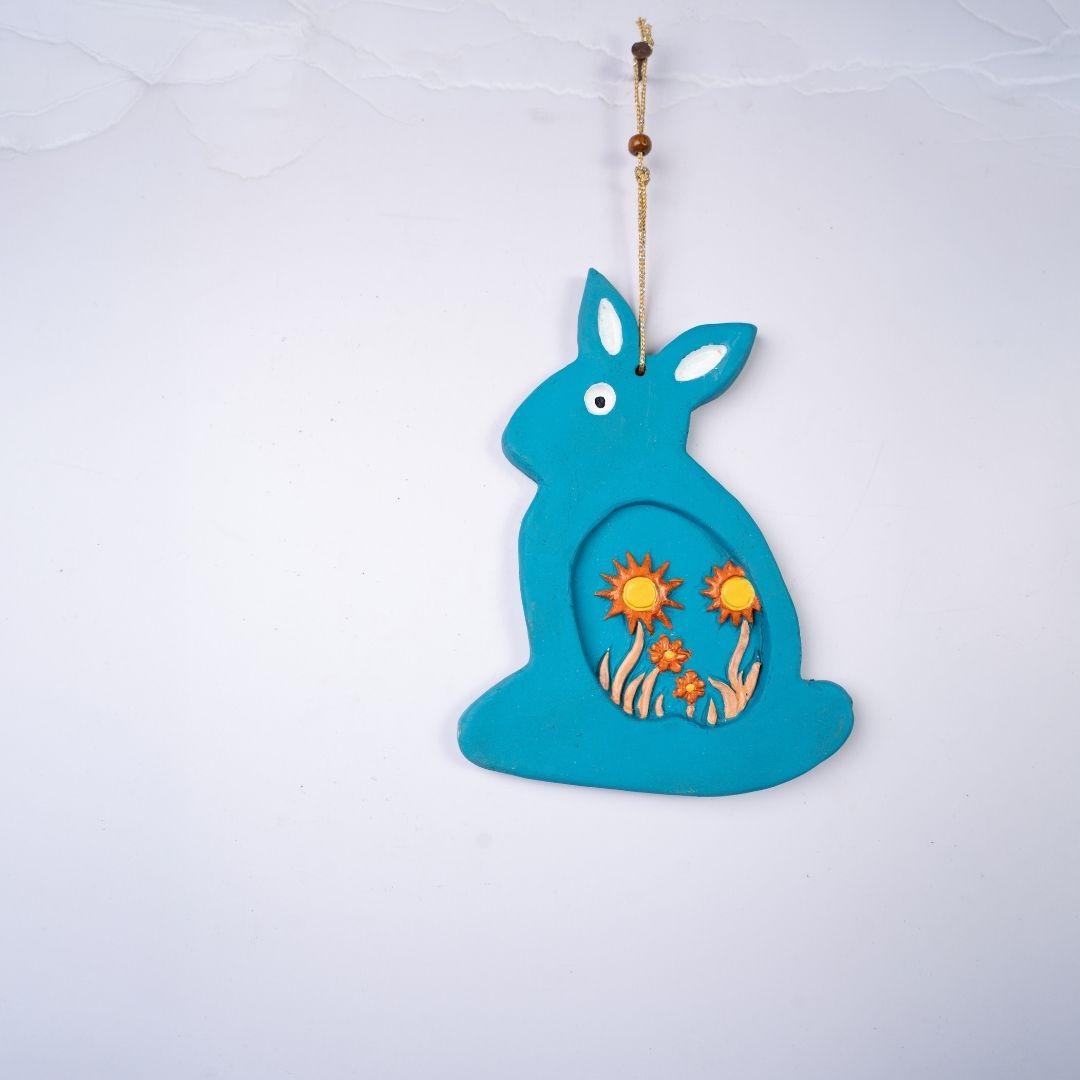 Hand-Painted Terracotta Rabbit Hanging (Blue)