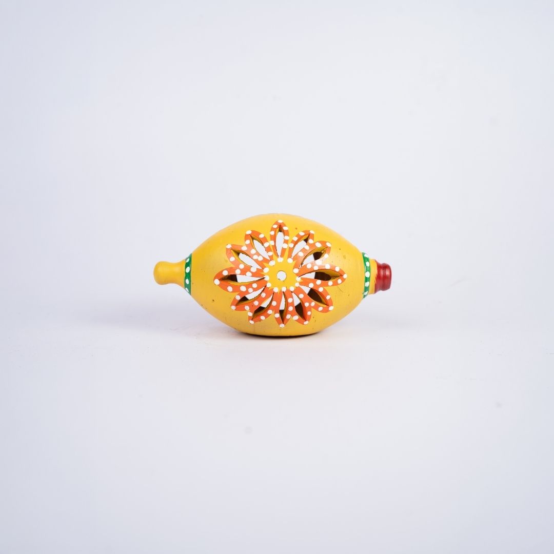 The heart of the piece is the hand-carved floral jaali window. When a tea-light glows within, it breathes life into the clay, casting dancing petals of light and a warm amber glow across your sanctuary. It’s a soulful, heart-led tribute to the rhythmic heritage of authentic Indian folk art.”