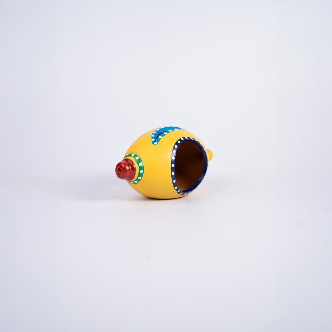 “Shaped by tradition, this terracotta Shankh (conch shell) holder is a labor of love from a master’s wheel. The conch represents auspicious beginnings, and here it is transformed into a silent, spirited storyteller for your festive altar or modern shelf. Every curve carries the quiet, rhythmic energy of rural heritage.