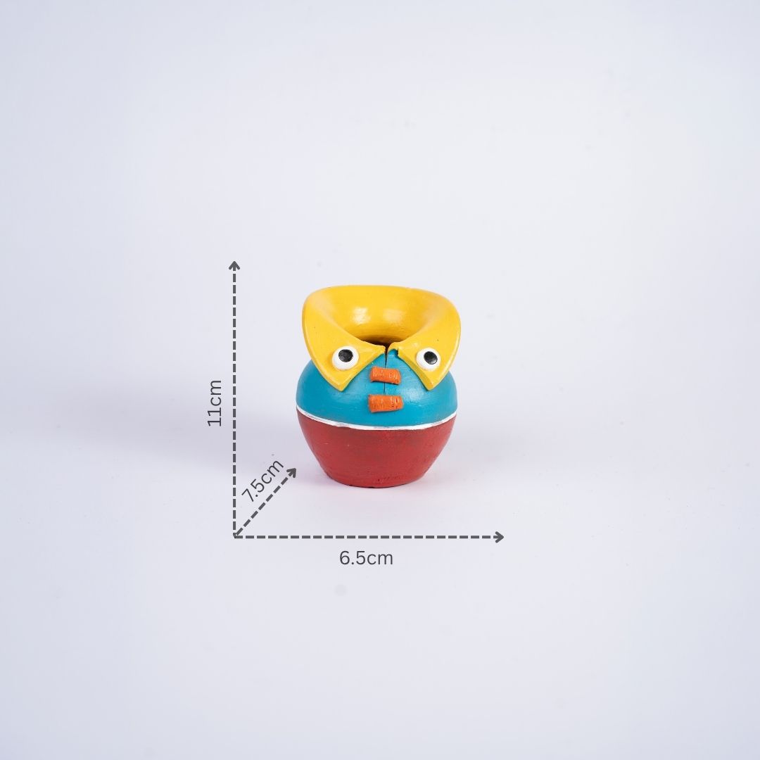 “Brighten up your desk or home office with our Hand-Painted characterful Terracotta Pen Stand, a delightful fusion of traditional Indian craft and playful modern design. This unique piece is more than just an organizer; it’s a small work of art that brings personality to any surface.