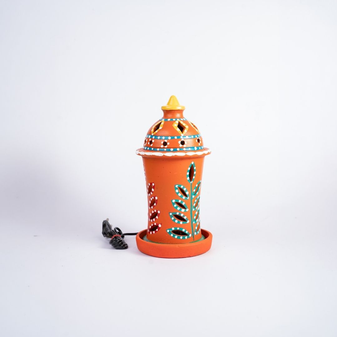 “This spirited lamp begins as cool, raw earth, shaped on a traditional potter’s wheel into a slender, cylindrical silhouette with a matching dome-shaped lid. Every curve carries the quiet, rhythmic energy of a village workshop, transforming humble clay into a sturdy, soulful anchor for your favorite reading corner.