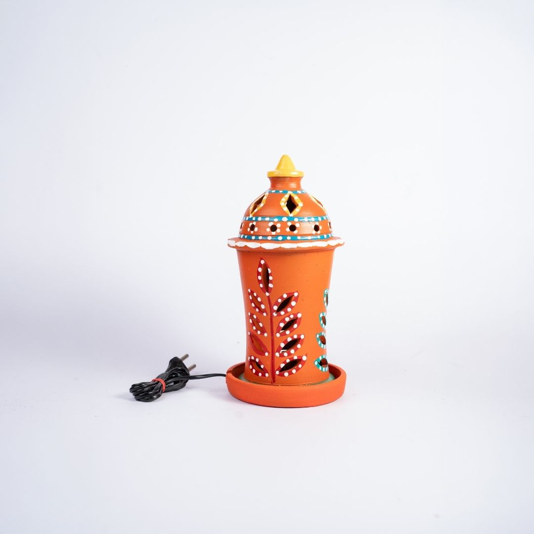 The true soul of the piece awakens when the internal bulb is lit. Light breathes through the hand-carved floral jaali (cutwork), casting dancing shadows and a soft, amber glow across your sanctuary. It is a heartfelt connection to a legacy of craftsmanship, filling your home with an authentic, human-made heartbeat.”