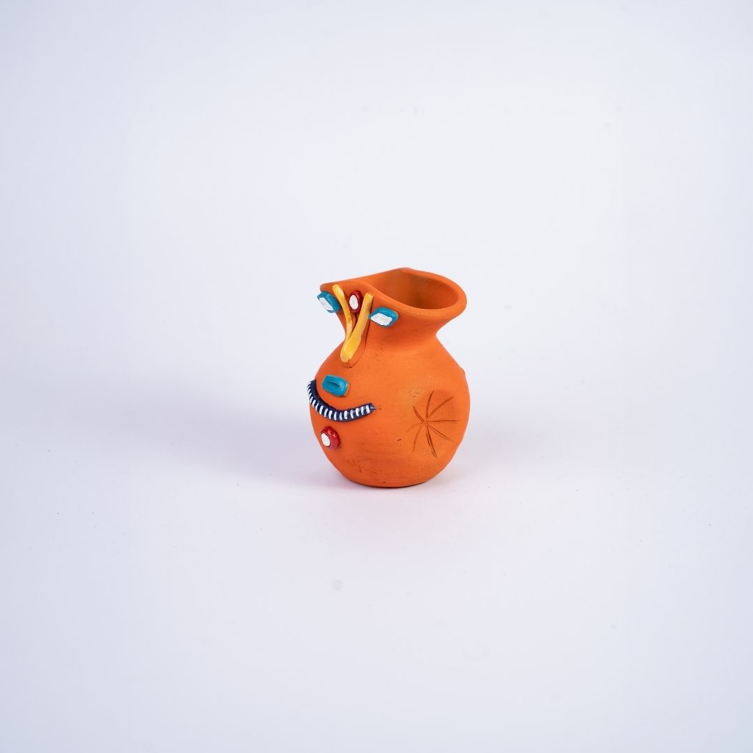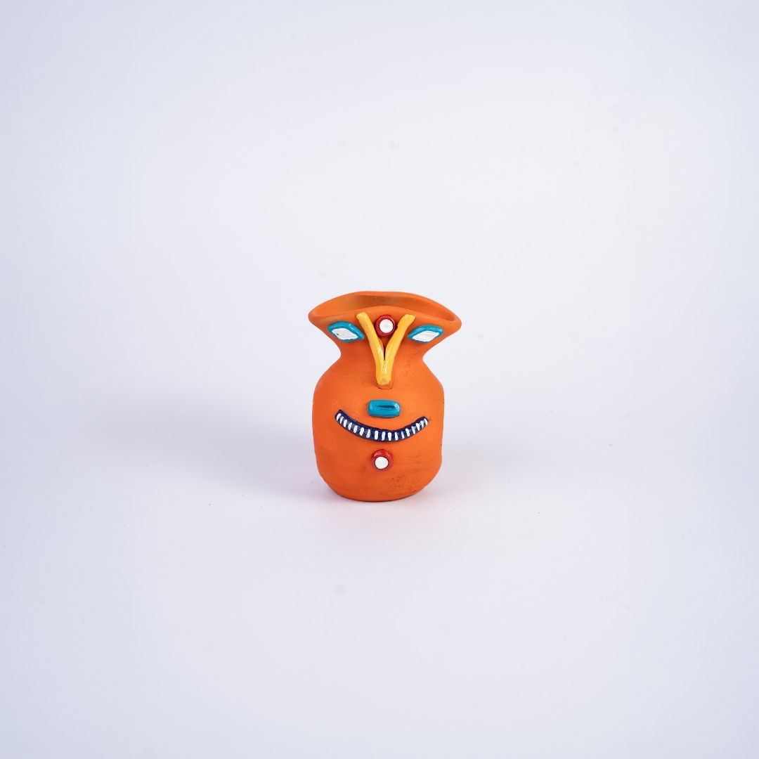 More than just a pot, this is a character with a heart. The tiny red and white dots on the chin are like a signature of the artisan’s love. It brings an infectious energy to your sanctuary, connecting you to the soulful heritage of rural craftsmanship.”