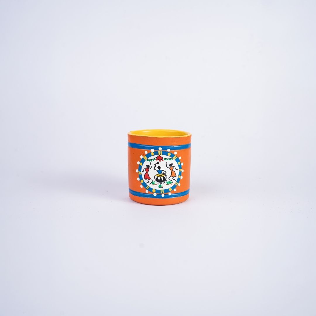 “This piece begins as raw earth, shaped by the steady, rhythmic hands of a village potter. Born from natural clay and turned on a traditional wheel, its clean cylindrical silhouette offers a sturdy, grounding presence. It is more than just a holder; it is a tangible link to the soil and the quiet pride of the artisan.
